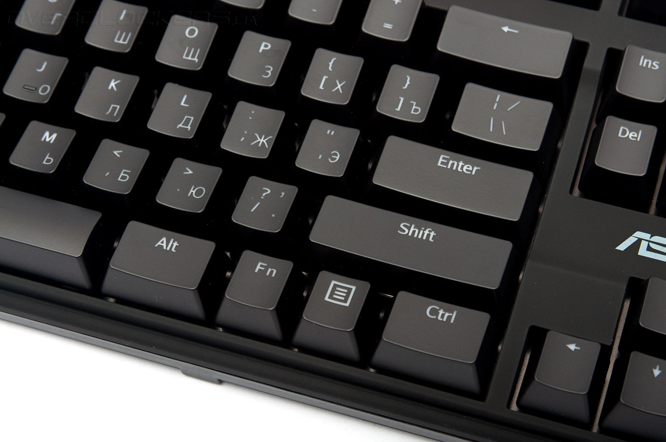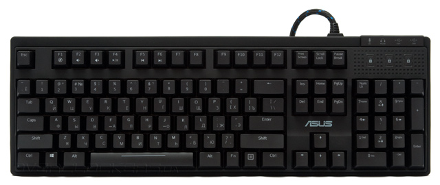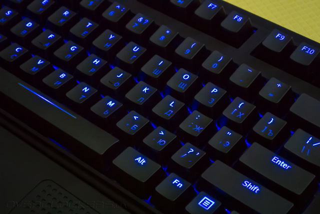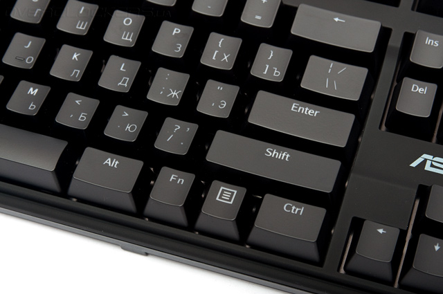 В распределении элементов управления нет изменений. Локализованная версия содержит удлинённый левый Shift, что в первую очередь порадует геймеров. Одноуровневая клавиша Enter свидетельствует об американском (ANSI) варианте раскладки.