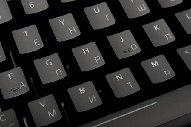 Крайне тусклая подсветка кириллицы усложняет набор текста при слабом освещении и снижает читабельность литер на расстоянии до полуметра. Впрочем, это отнюдь не самый главный недостаток системы иллюминации. С самого первого подключения подсветка не загоралась автоматически и требовала ручного настройки яркости.