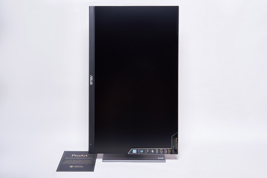 Тыльная сторона ASUS ProArt PA278QV сделана из фактурного матового черного пластика. В верхней части выгравировано лого производителя, а на ножке нанесено лого самой серии ProArt.