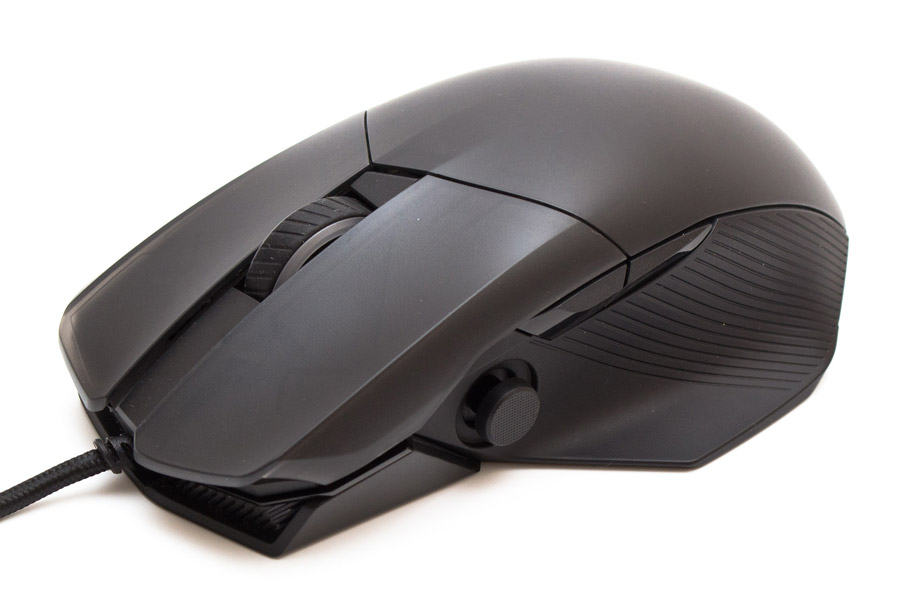 Основные кнопки имеют небольшой люфт из-за своего магнитного крепления, что не влияет на их тактильную отзывчивость в целом. Свободный ход сведен к минимуму благодаря тому, что панели кнопок подпружинены и принудительно подведены к переключателям. Колесо прокрутки тоже имеет люфт в правую сторону. Претензий к боковым кнопкам нет. Кабель не мешает движениям мыши, но все же желательно использовать его вместе с держателем. Скольжение мыши хорошее, со средним уровнем инерции.