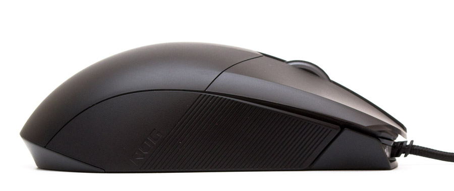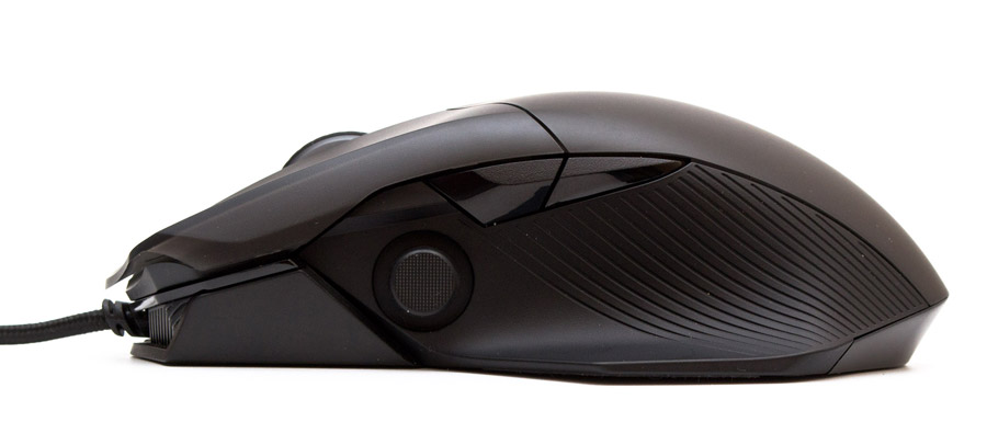 С правой стороны мыши ничего особо интересного нет. Поверхность с диагональной текстурой смещена вперед, в место контакта с безымянным пальцем и мизинцем.