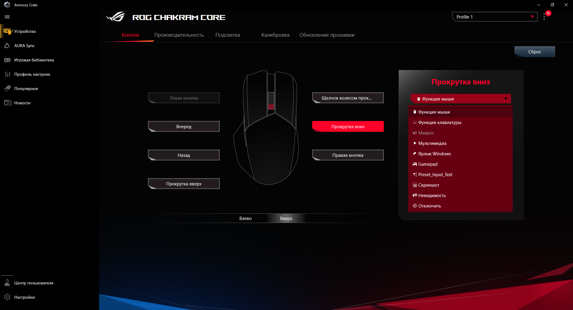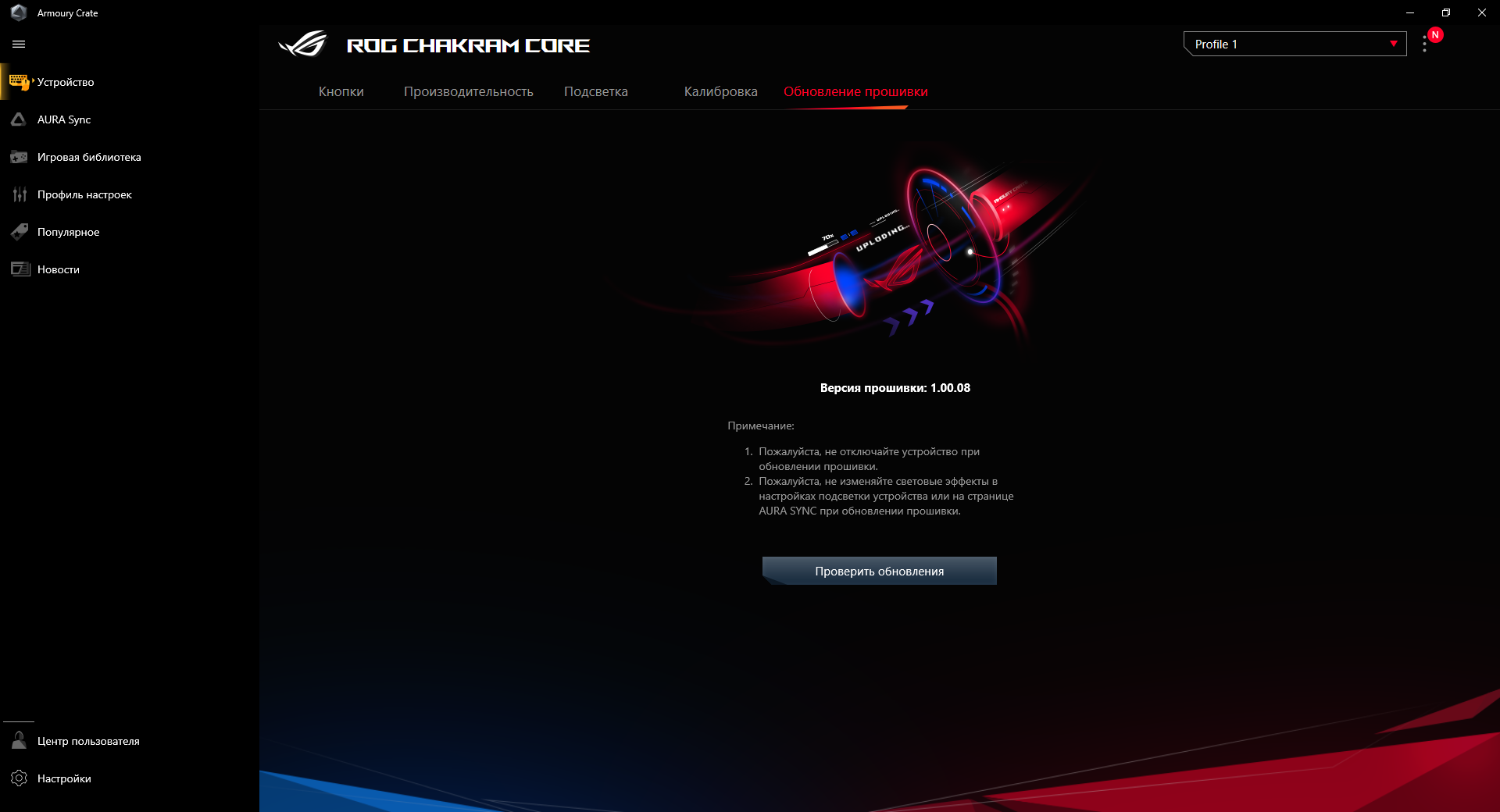 В качестве программного обеспечения ASUS ROG Chakram Core использует ресурсоемкое ПО Armoury Crate, которое требует загрузки с официального сайта и установки. Оно является постоянно активным.