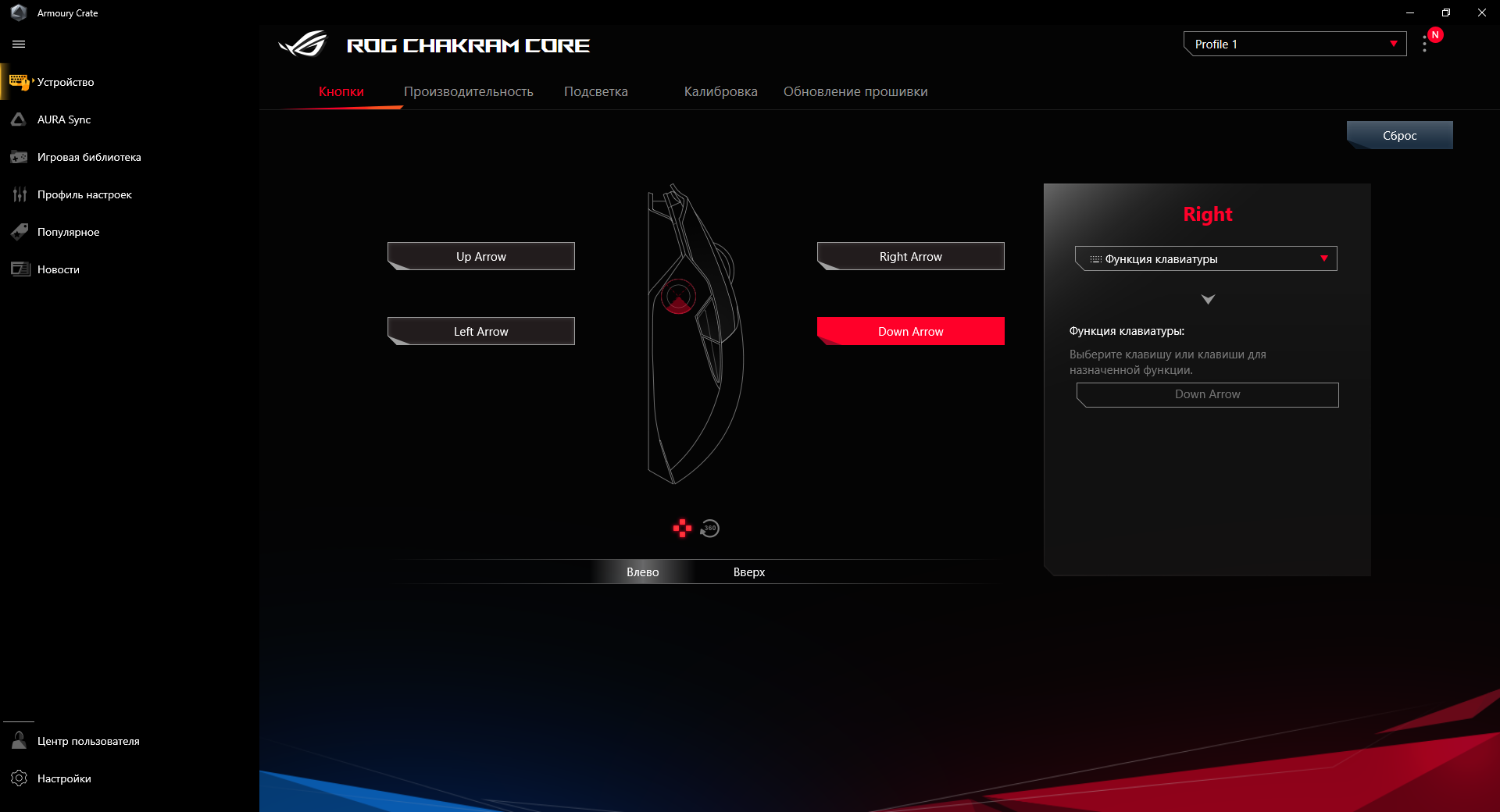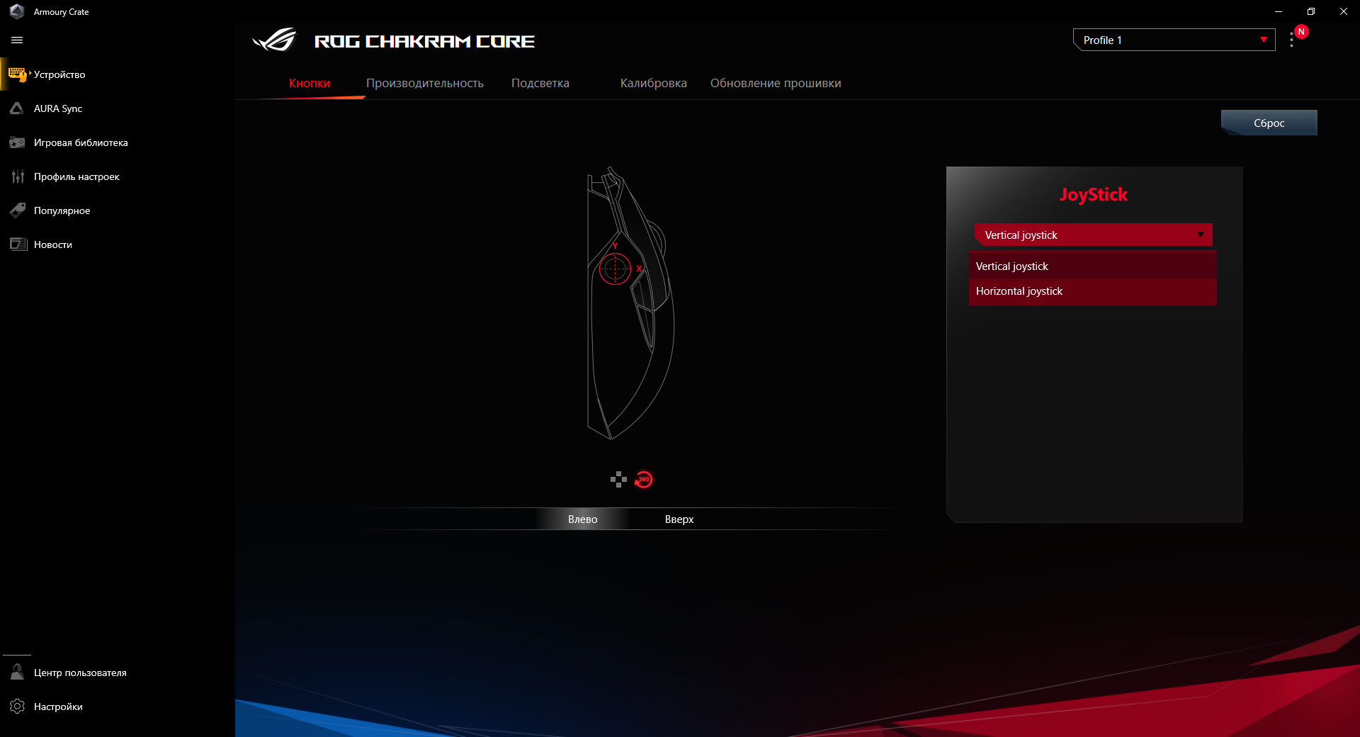 В качестве программного обеспечения ASUS ROG Chakram Core использует ресурсоемкое ПО Armoury Crate, которое требует загрузки с официального сайта и установки. Оно является постоянно активным.