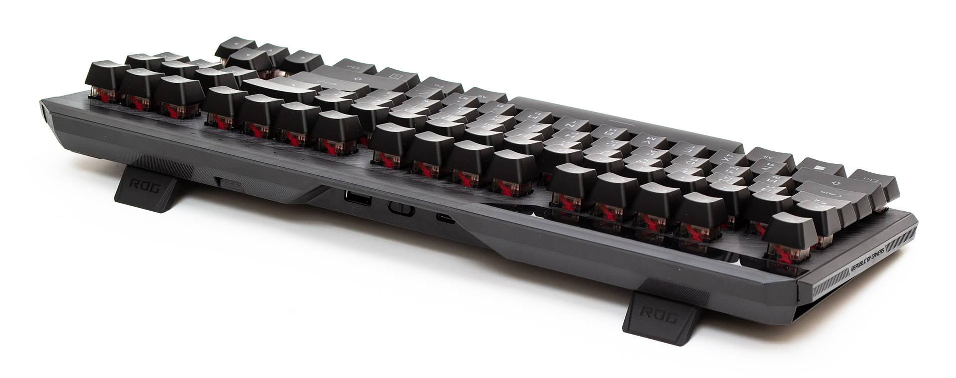 ROG RX Red представляют собой линейные переключатели, имеющие всего 1,5 мм хода до срабатывания, при 4 мм общего хода до упора. Для их активации необходимо приложить 45 г усилия, при начальной перегрузке в 40 г и пиковой в 55 г. Нажимаются переключатели с легким сопротивлением и при этом они ближе к мембранным клавиатурам, чем к обычным механизмам. Однако в отличие от них все кнопки имеют непревзойденную стабилизацию в горизонтальной плоскости. Звук получается довольно тихий и глухой.