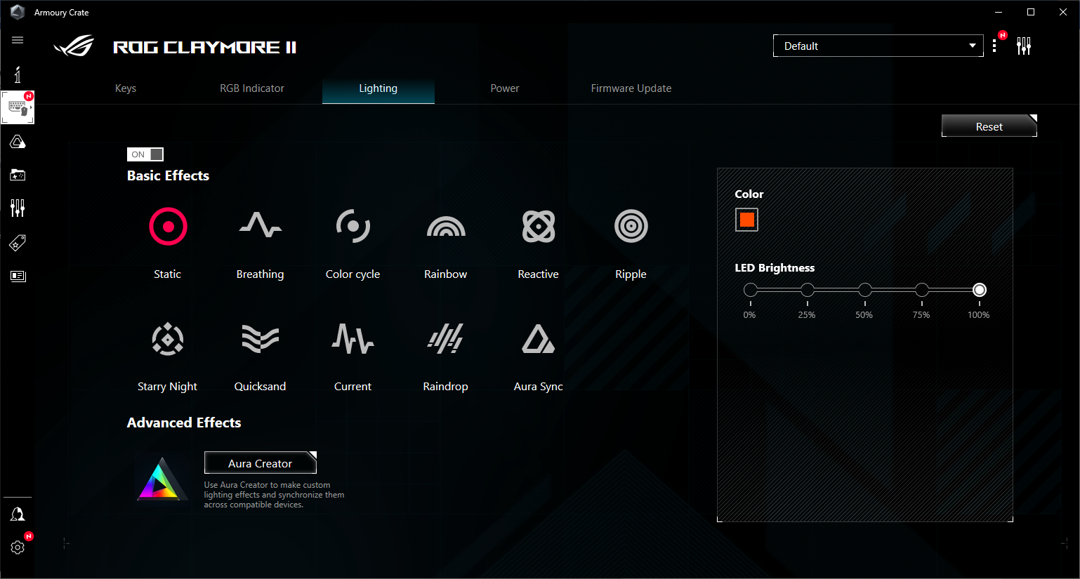 В настройках подсветки доступны 11 видов эффектов, включая статическую подсветку. Подсветку можно полностью отключить. Для индивидуальной настройки подсветки каждой кнопки нужно будет скачать приложение Aura Creator.