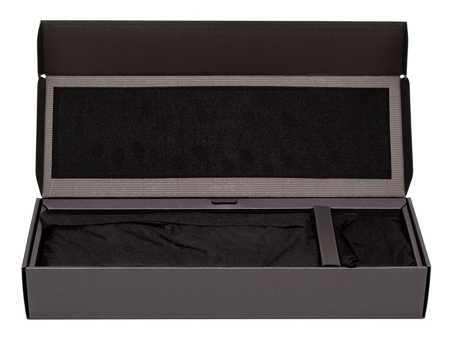 Защиту от повреждений внутри обеспечивают дополнительные картонные вставки и обертка из искусственной ткани.