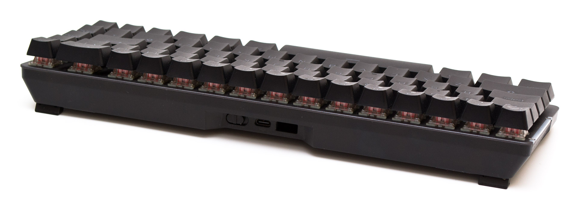 На тыльной стороне устройства есть углубление, где спрятан переключатель питания, порт USB Type-C (полностью открытый для доступа любых кабелей такого формата) и магнитный кармашек для беспроводного приемника. В него удобно бывает вставлять «флешки», чтобы случайно их не потерять.