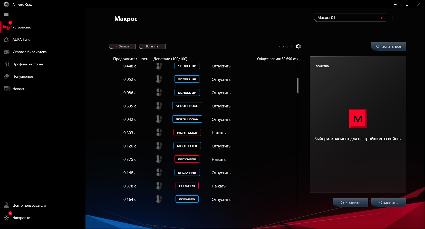 В макроредакторе можно записывать команды клавиатуры с учетом временных промежутков, повторов и задержек или без них, а еще нажатия всех клавиш мыши и направления поворота колеса прокрутки. Потом все это можно оперативно отредактировать. Каждая макрокоманда может вмещать не более 100 символов.