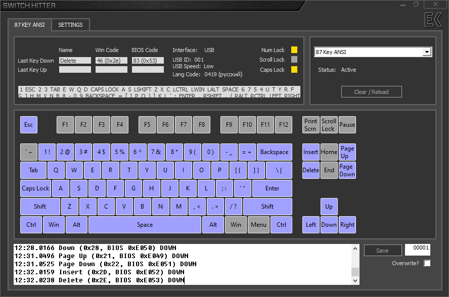| Fn+Caps | Сброс клавиатуры на настройки по умолчанию |