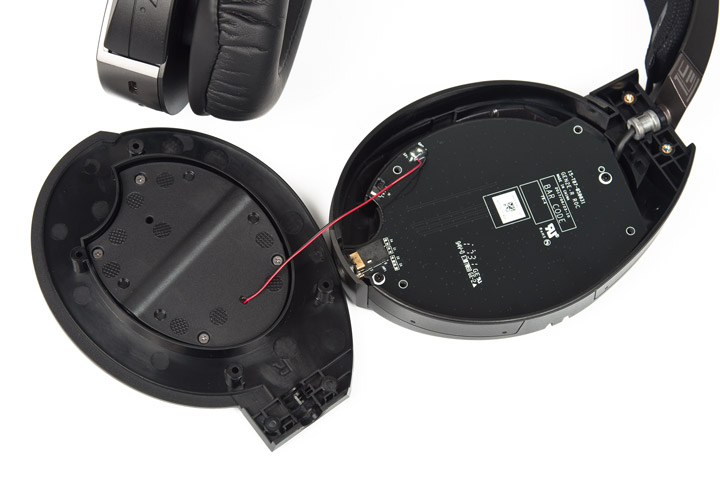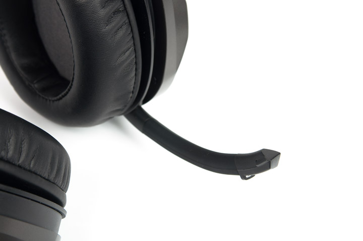 На левой чашке скрывается миниатюрный однонаправленный микрофон. В скрытом виде он по умолчанию не активен и включается по щелчку, когда опущен. Ножка гибкая, так что, пользователь запросто сможет подобрать оптимальную для себя форму.