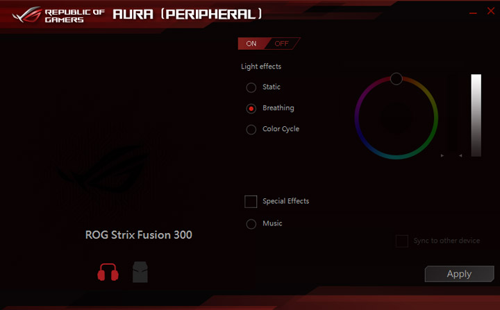ASUS ROG Strix Fusion 300 работает с родным приложением Aura.