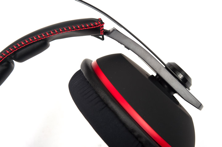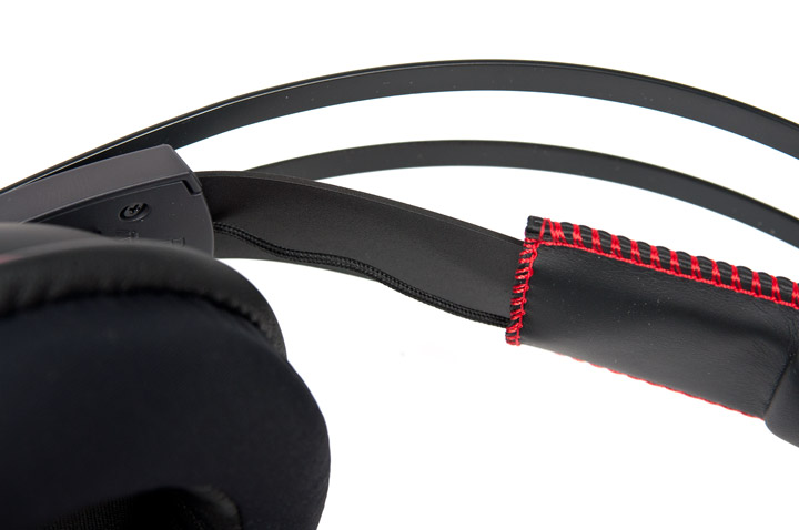 Основа TUF Gaming H7 — верхнее металлическое оголовье, которое соединяется на чашках с внутренним мягким оголовьем из гибкого пластика, покрытого вставкой из кожзама.
