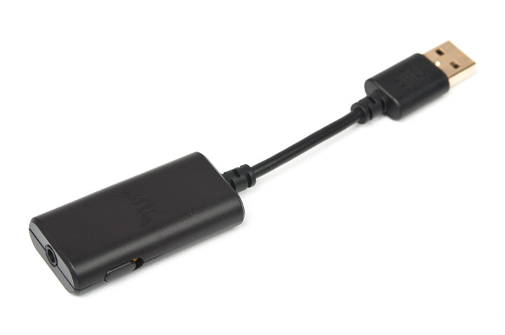 У нас оказался заводской семпл ASUS TUF Gaming H7, а значит, новая игровая гарнитура приехала без родной коробки, но с полным комплектом поставки. В него входят сами наушники с впаянным 1,2-метровым проводом в нейлоновой оплетке и универсальным TRRRS-разъемом, звуковой картой с USB-портом с одной стороны и 3,5-мм аудиовходом с другой. Имеются также компактный разветвитель и съемный однонаправленный микрофон с мягкой овальной насадкой для дополнительного отсечения посторонних звуков.