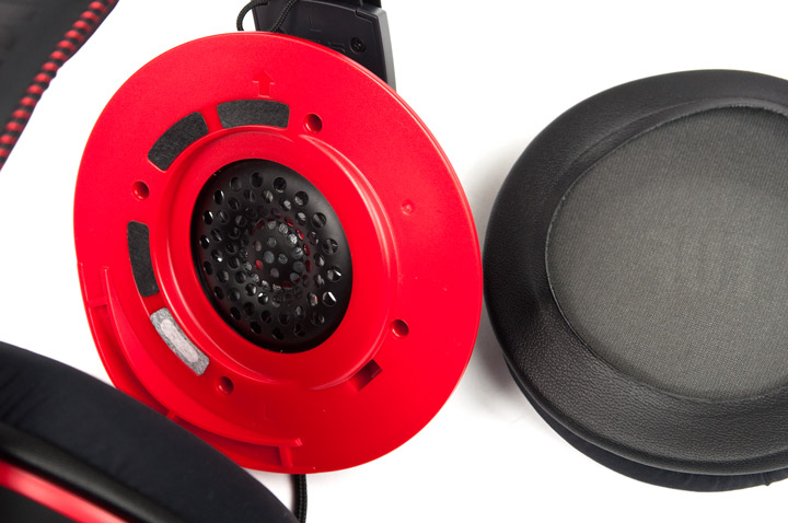 Снизу расположились стилизованные под квадратики вставки из вспененного материала. Соединяющий чашки провод прячется под кожаной вставкой оголовья и покрыт нейлоновой оплеткой.