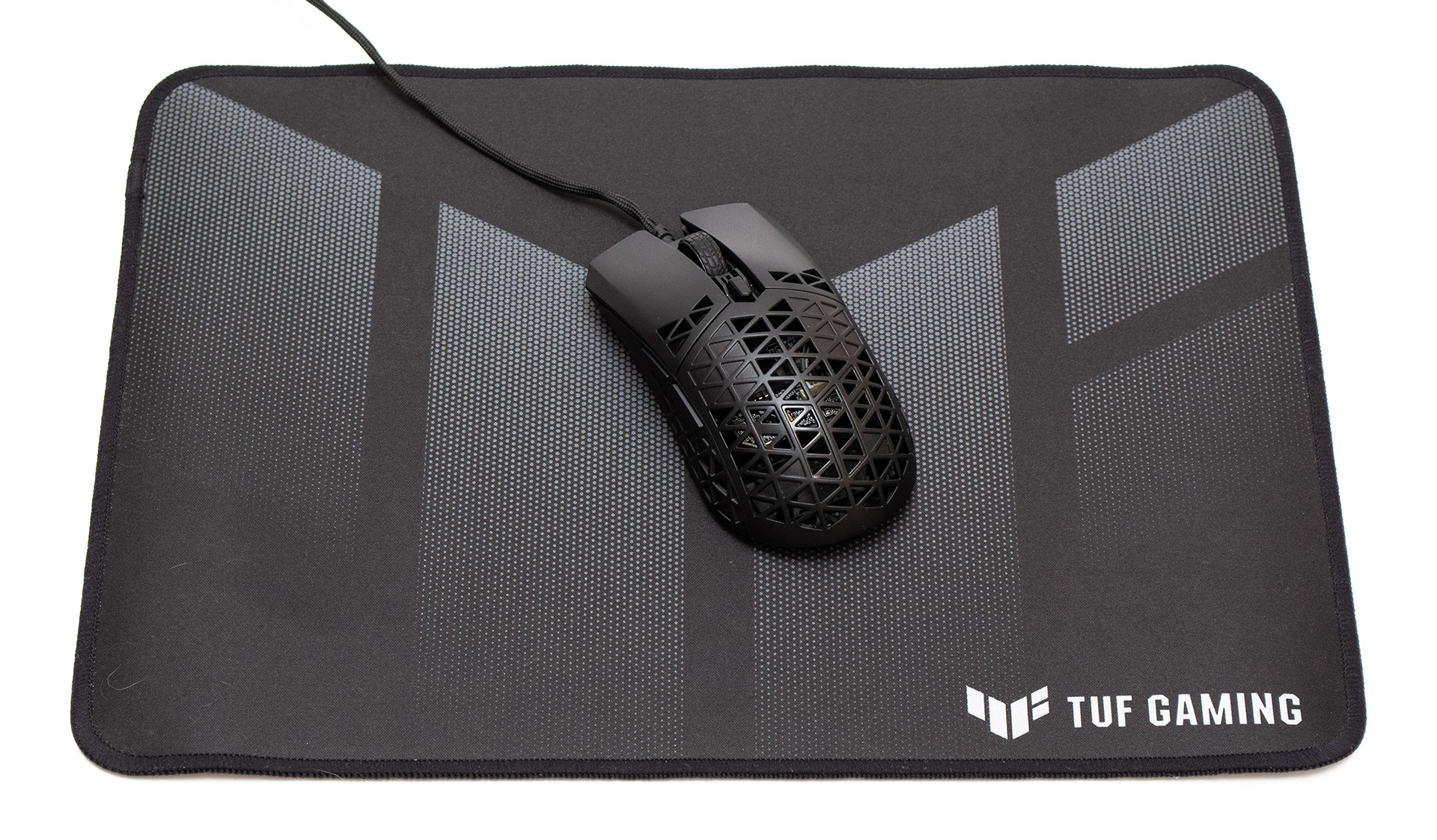 Тестирование мыши ASUS TUF Gaming M4 Air проводилось на фирменном коврике ASUS TUF Gaming P1. Это скоростная тканевая поверхность с очень мягким и скользким покрытием и ненавязчивым рисунком. Её габариты составляют 360х260х2 мм.
