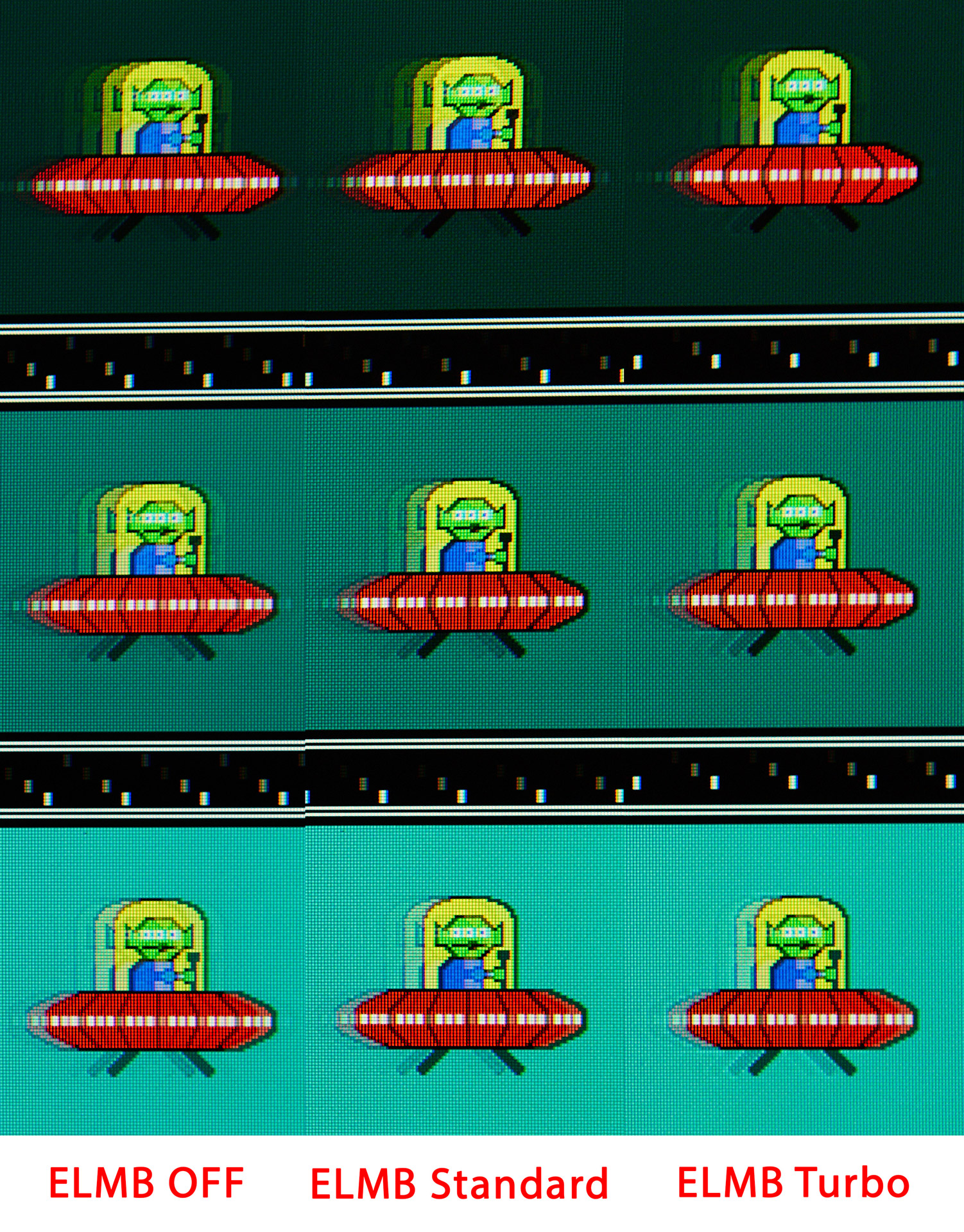 Следующей важной настройкой идет ELMB. ELMB SYNC — это режим, в котором используется подсветка строба, мигающая синхронно с циклами обновления. То есть, на простом языке, это технология вставки «черного» кадра между кадрами, которые были ранее. В итоге мы имеем стробоскопические перекрестные помехи — это эффект двойного изображения, который иногда можно увидеть во время Blur Reduction (технологии аналогичные ELMB).