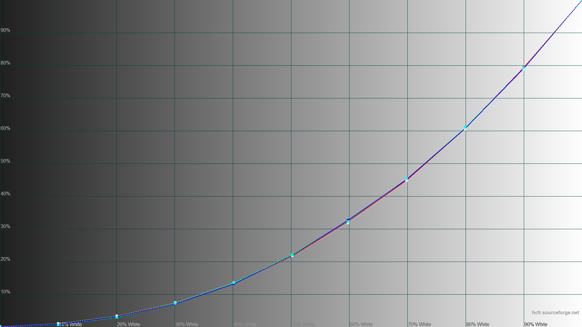 Гамма-кривые указывают все на ту же небольшую перенасыщенность красного и зеленого.