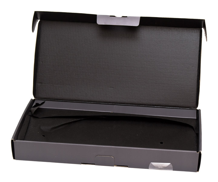 Упаковка клавиатуры имеет компактные размеры и окрашена в серый цвет. На фронтальной ее части есть изображение устройства в лицевой проекции со всей включенной иллюминацией. Здесь же указано название товара, тип используемых переключателей и подсветки, упомянуто наличие русской раскладки. На обратной стороне коробки на восьми языках перечислены основные достоинства клавиатуры. Здесь же есть картинка, показывающая в разрезе, из каких частей состоит данное изделие. Технические характеристики не указаны, за всеми подробностями предлагается обратиться на официальный сайт компании.