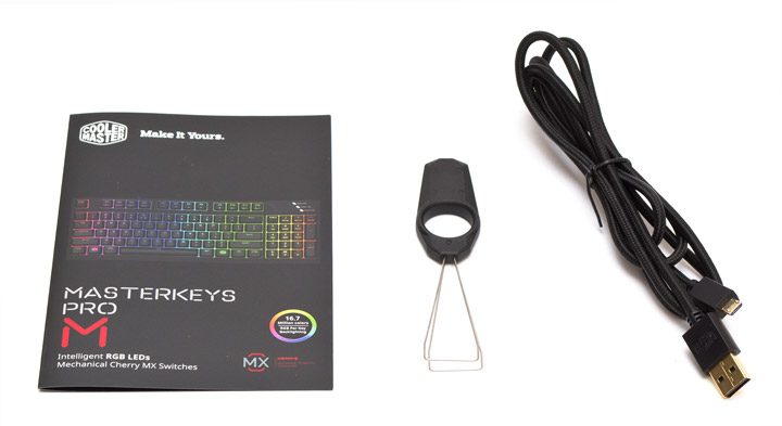 В комплекте поставки есть короткая инструкция по использованию, проволочный ключ для демонтажа колпачков и съемный USB-кабель в нейлоновой оплетке.