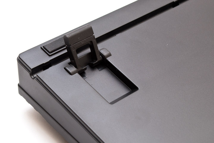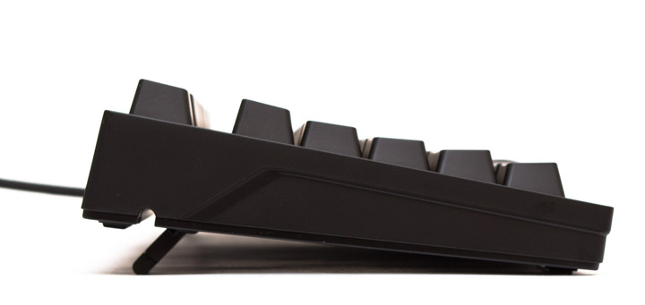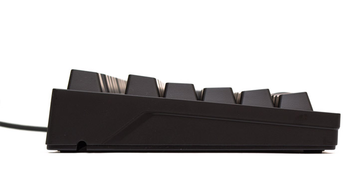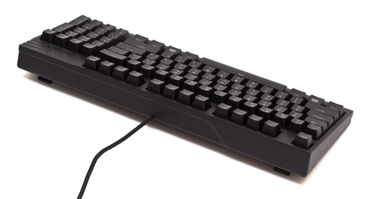 Корпус клавиатуры имеет небольшой наклон по направлению вперед. Первые три ряда колпачков слегка отклонены назад в профиль, а задние три наоборот, имеют скос вперед. Ножки в развернутом состоянии прибавляют к высоте задней части клавиатуры 13 мм, увеличивая угол наклона вперед. В задней нижней части левой и правой боковины есть отверстие, через которое можно вывести в сторону сигнальный кабель.