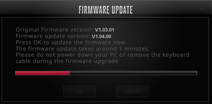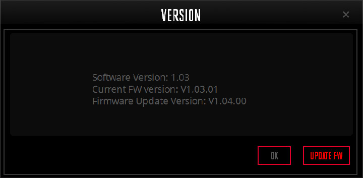 Нажав на знак вопроса в верхнем правом углу можно посмотреть версию драйвера, текущую версию прошивки и доступную для обновления версию прошивки клавиатуры. А так же принудительно ее обновить.