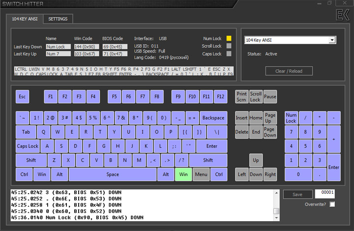 Антигостинг в данной клавиатуре представляет собой постоянно активный режим NKRO для всех клавиш, хотя в описании и упоминается про совмещение NKRO и 6KRO. Как именно это реализовано не ясно. Возможности переключения режимов вручную нет.