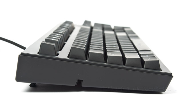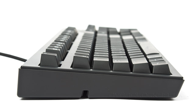 К нам попала модель оборудованная Cherry MX Blue. Благодаря отчетливым тактильным ощущениям и громким щелчкам, возникающим посередине хода клавиши, эти переключатели больше подходят для набора текста. Нажатия происходит плавно, чувствуется минимальное сопротивление. Для полного срабатывания прилагается усилие, эквивалентное силе тяжести равной 50g (60g в пике). Глубина хода 1,5–2 мм до середины и 4 мм до основания. Сложности применения MX Blue в играх объясняется тем, что точка срабатывания находится ниже точки нажатия. В результате этого ведение скоростной стрельбы или сложных комбинаций становится проблематичным.