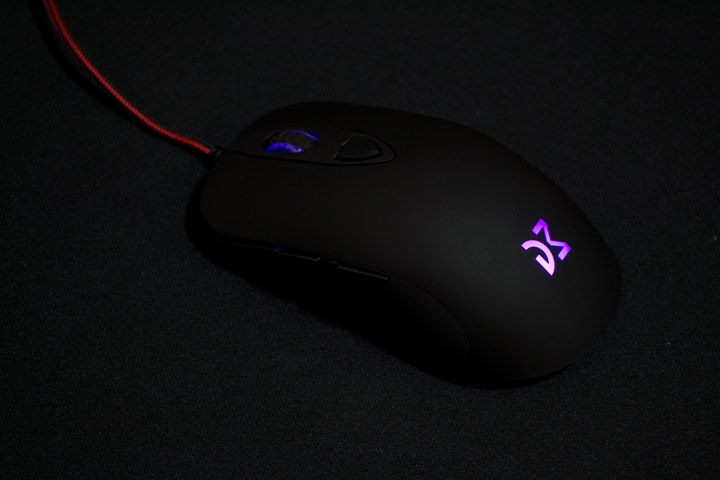 Эргономику мыши DM1 Pro описывать нет особого смысла — всем, кто держал в руках Sensei RAW, особенно с прорезиненным покрытием, она покажется просто родной. Софттач покрытие здесь тактильно очень приятное, хотя поначалу возникает ощущение, что оно выскальзывает из рук. Но спустя некоторое время понимаешь, что это ошибочное чувство и манипулятор сидит в ладони надежно. Единственный минус состоит в том, что данный тип покрытия малоустойчив к загрязнению и быстро собирает разводы от отпечатков пальцев. Корпус мыши хорошо сбалансирован и имеет малый вес, это позволяют без проблем совершать перестановки в быстрых играх. Ножки достаточно скользкие, мышь на них плавает не испытывая сопротивления на фирменном коврике. Из коробки ножки затянуты защитной пленкой, которую можно легко не заметить, забыть снять и подумать, что мышь не скользит. Претензий к характеру срабатывания основных и вспомогательных кнопок у меня не возникло, в них хорошо подобрана жесткость и нет свободного хода. А вот колесо прокрутки кажется малоинформативным из-за слабых позиций фиксации. С другой стороны оно тихо работает и практически не шатается, потому данный момент уже относится больше с личными предпочтениями. Подсветка данного манипулятора никак не регулируется и находится в режиме постоянной медленной пульсации. В использовании это незаметно, но во время простоя может привлекать лишнее внимание. На месте производителей я бы сделал ее все же постоянной. Цвет меняется в зависимости от текущего разрешения. Программного обеспечения тут нет.