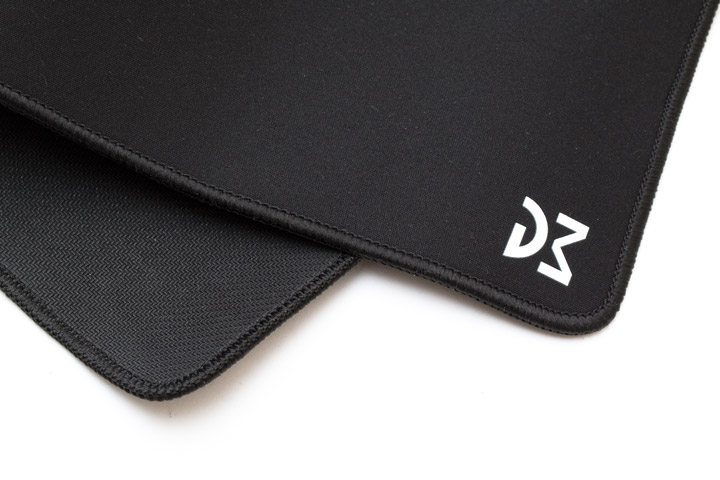 Внешняя поверхность коврика окрашена в монотонный черный цвет, если не считать белый логотип бренда в правом нижнем углу. По степени трения коврик можно считать средним — не слишком скользким, но и без ярко выраженного эффекта наждачной бумаги. Мелкое плетение поверхности обеспечивает одинаковое сопротивление скольжению, как в вертикальном, так и в горизонтальном направлении. Края коврика прошиты мощными нитями по всему периметру. Мягкое резиновое основание надежно фиксирует поверхность на столе, не давая ей ерзать.