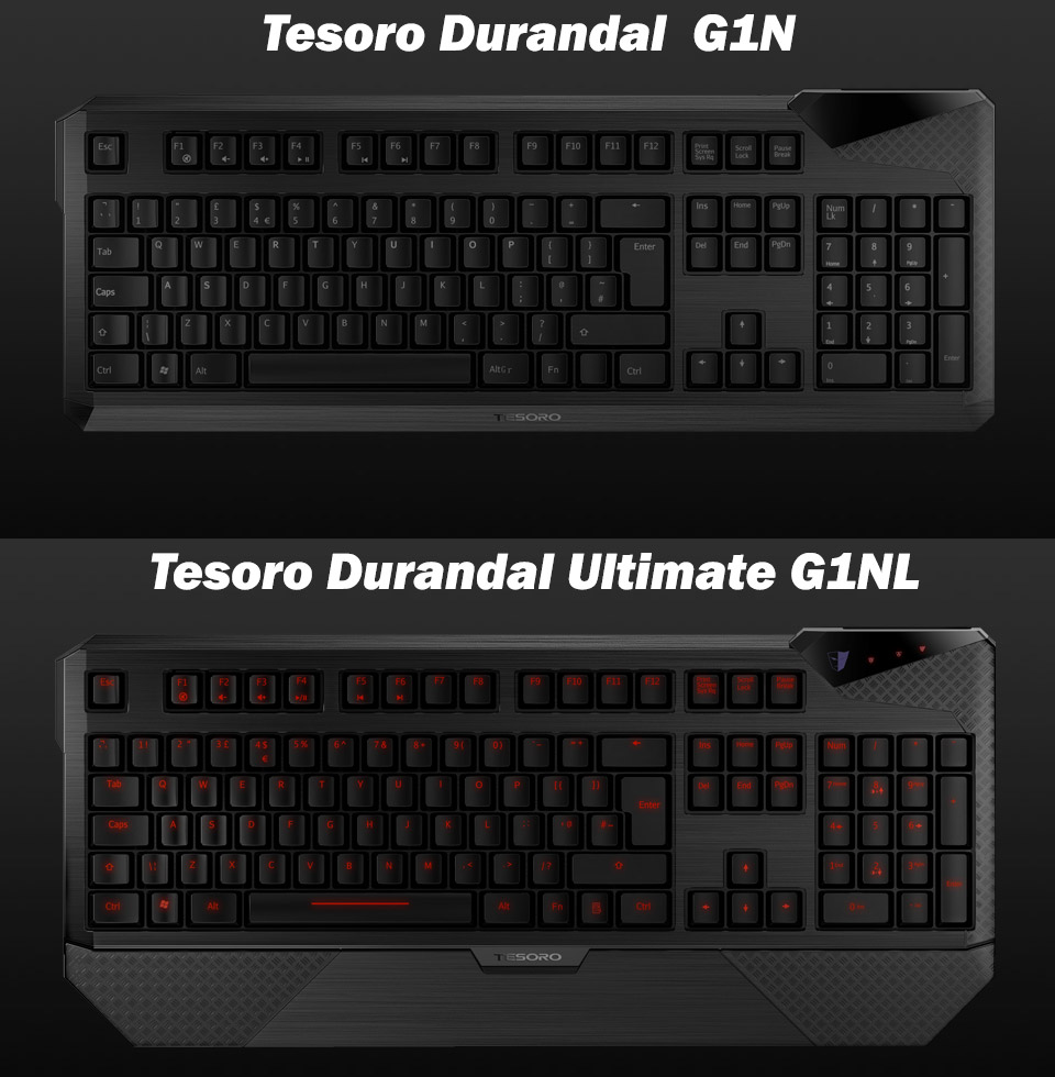 Tesoro Durandal Ultimate G1NL — версия с регулируемой подсветкой красного цвета, встроенной памятью для хранения профилей, съёмной подставкой под запястья, встроенным USB-хабом и функцией Full USB N-Key Rollover.