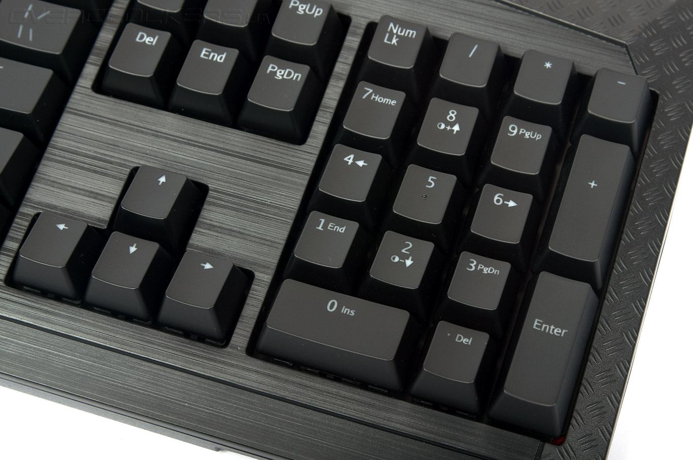Cherry MX Black заполнили функциональный блок, служебные клавиши и оставшиеся элементы цифровой клавиатуры. Из-за специфики механизма срабатывания обе модели считаются оптимальными для использования в играх. В обоих случаях нажатия происходят равномерно без тактильной отдачи и отчетливых щелчков. Момент срабатывания и опускания находятся на одном и том же уровне, что позволяет осуществлять множество действий за короткий отрезок времени. Глубина хода составляет 2 мм до срабатывания, и 4 мм до упора.