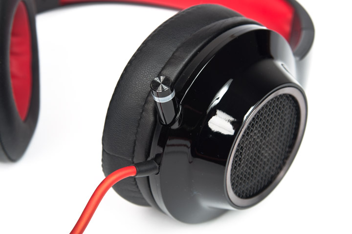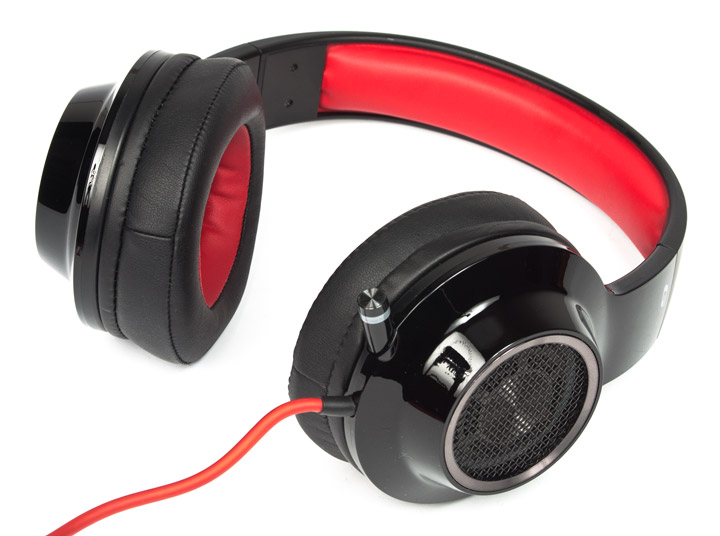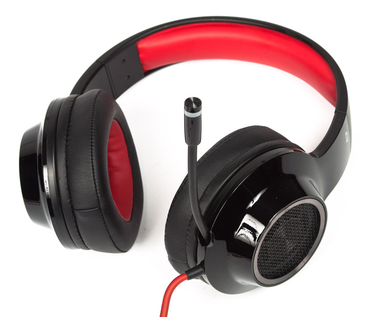 Встроенный в левую чашку микрофон из глянцевого пластика при необходимости выдвигается или прячется внутрь. Он получил среднюю по длине гибкую ножку и красный светодиод, который показывает статус его работы.