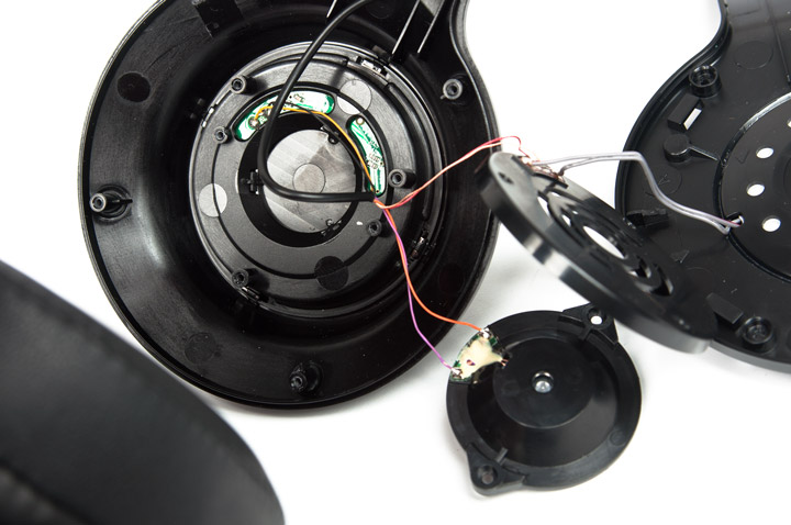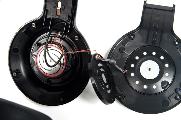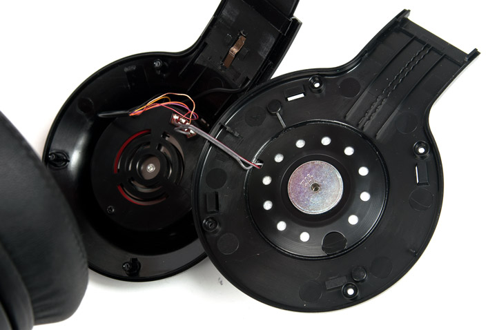 Внутри находятся 40-миллиметровые динамики с неодимовыми магнитами с дополнительными излучателями для вибрирующих басов.