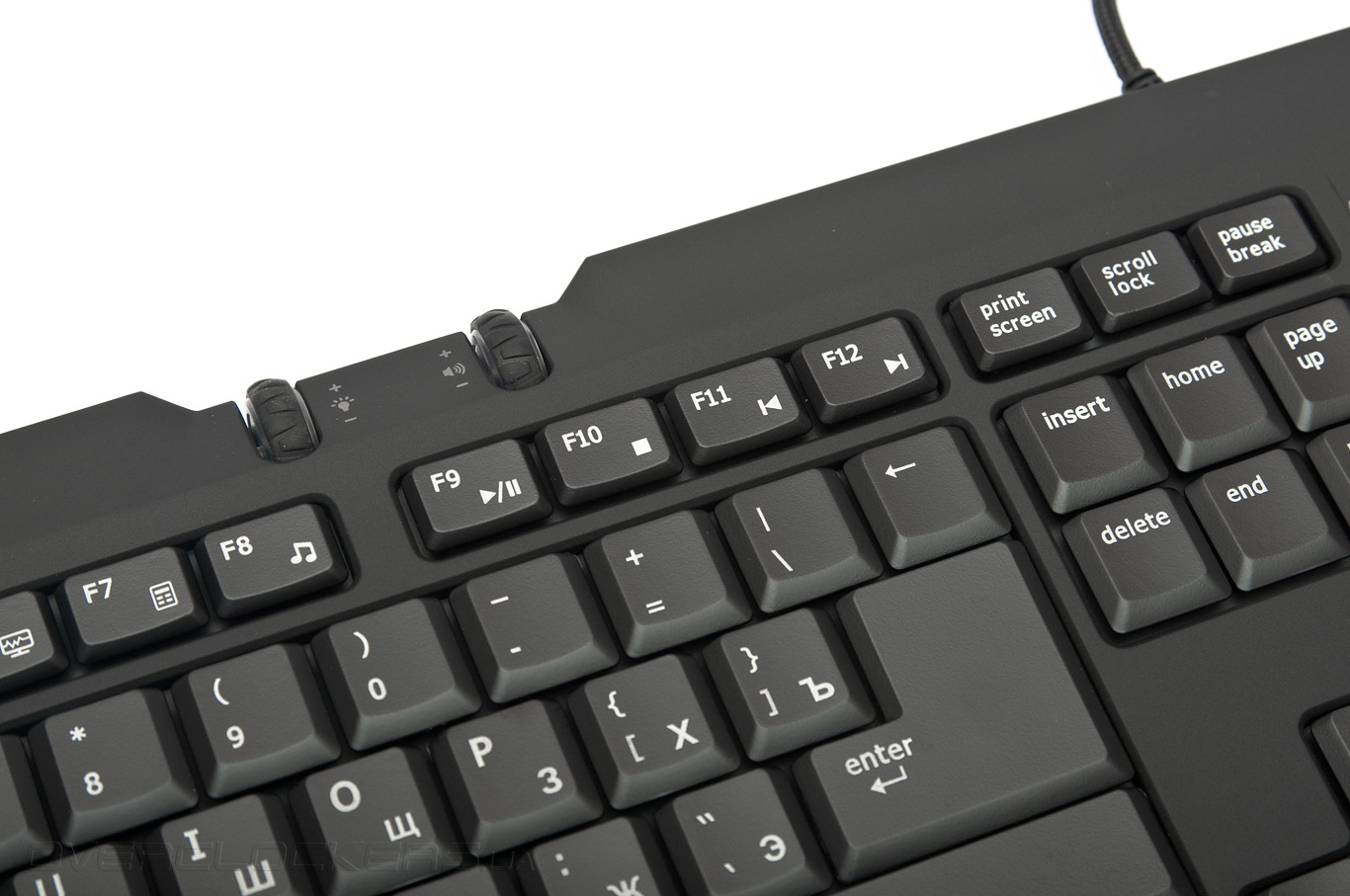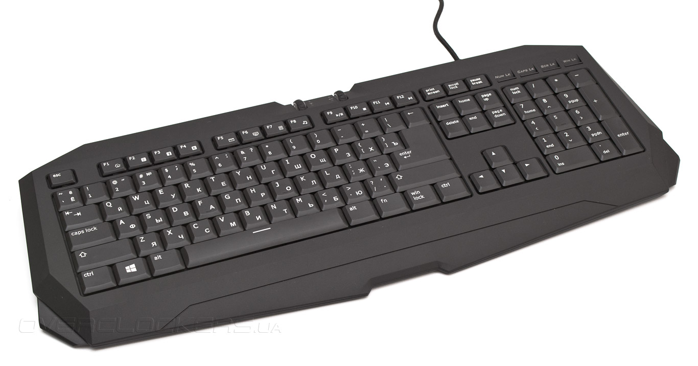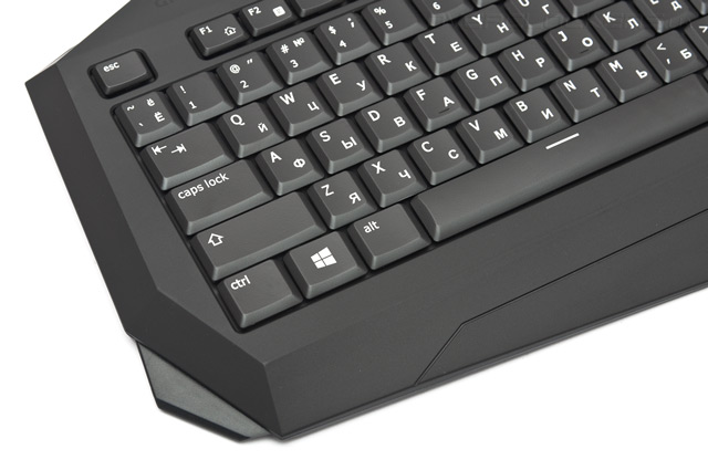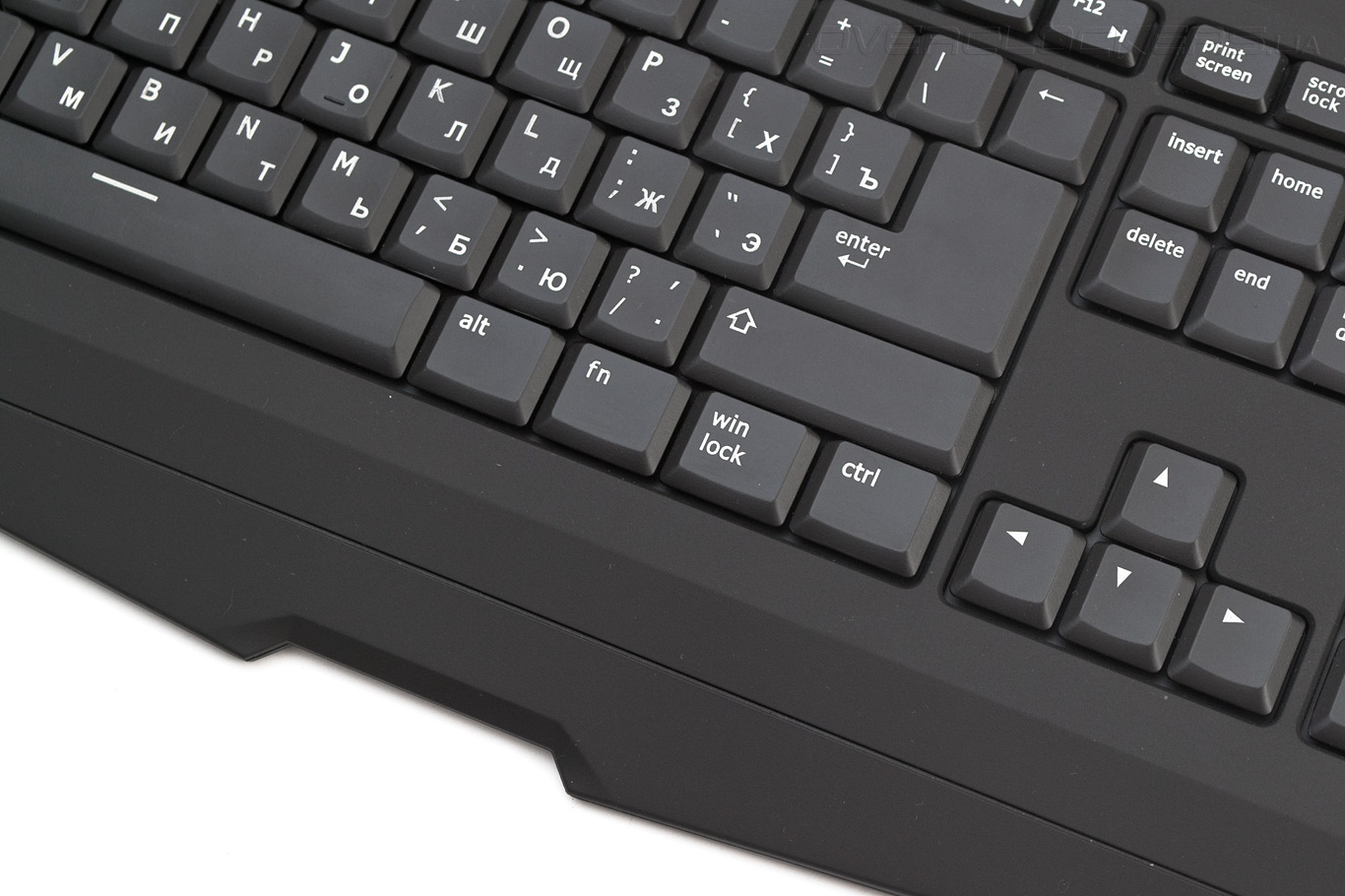 Раскладка клавиатуры сделана подходящей для геймеров. Прежде всего, хочется обратить внимание на длинный левый Shift, который так любят все игроки. Сами клавиши крупные, промахнутся по ним тяжело. Слегка, правда, смущает глянцевое покрытие кнопок, хорошо собирающее грязь и отпечатки пальцев.