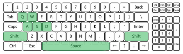 Ниже можно увидеть самое большое сочетание клавиш, которые способна обработать эта клавиатура одновременно. Как и заявлено — это действительно семь клавиш. В остальных зонах и сочетаниях наблюдается стандартная блокировка при совместной активации уже трех или четырех кнопок. С одной стороны этого должно хватать. С другой — результат получается ниже среднего, особенно если сравнивать с классическими игровыми клавиатурами, даже не упоминая те, что подключаются через разъем PS/2.