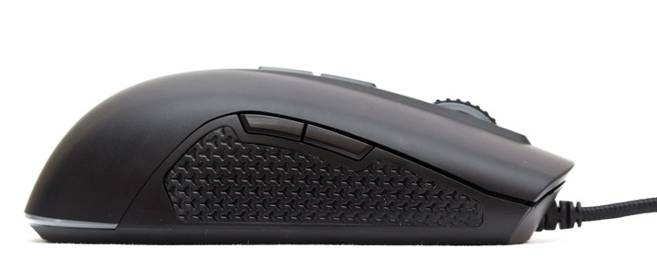На правой боковине есть еще две дополнительные кнопки. В целом она является зеркальной копией левой стороны мыши, делая ее симметричной и одинаково удобной как под правую, так и под левую руку.