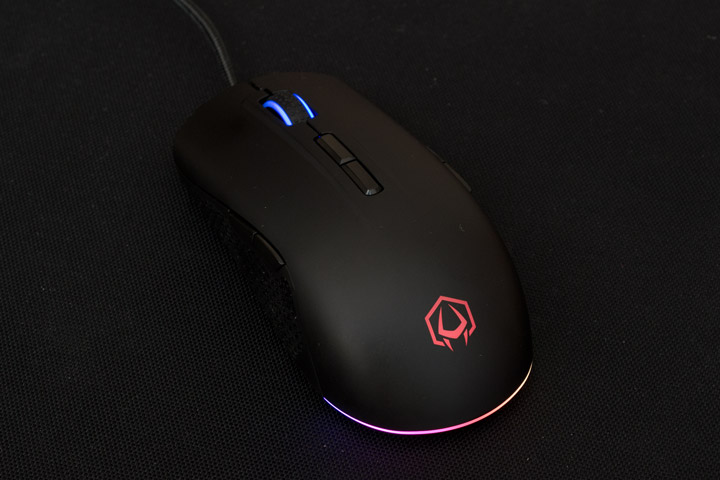 Зонами подсветки у мыши является колесо прокрутки, логотип на задней панели и полоска светодиодов снизу. Цвет колеса прокрутки не регулируется вручную и обозначает текущий уровень разрешения, с первого по шестой (красный, синий, зеленый, голубой, фиолетовый, желтый). Кроме того, подсветка колеса постоянно находится в режиме «дыхания». Оставшиеся две зоны настраиваются синхронно на любой цвет и могут воспроизводить несколько видов световых эффектов. Про точность цветопередачи говорить тут вообще не стоит, да и подсветка в целом — явно не главное достоинство этой мыши.