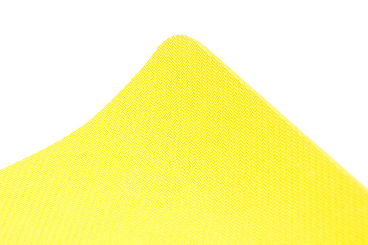 Обратная сторона игровой сделана из пористой резины и окрашена в желтый цвет. Края коврика не прошиты.