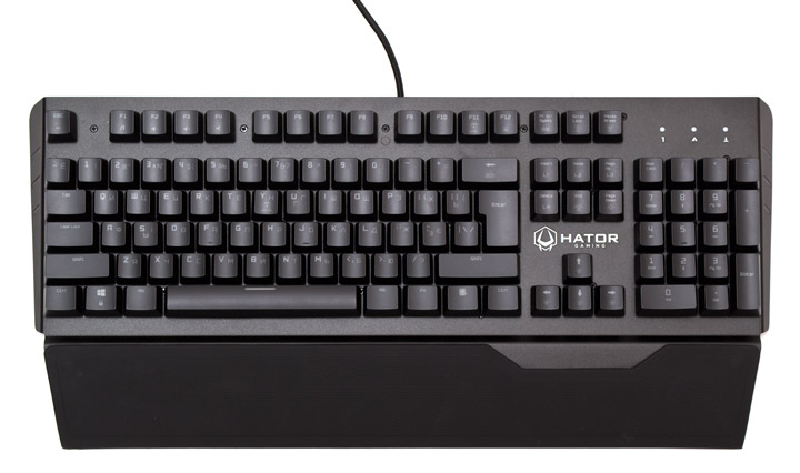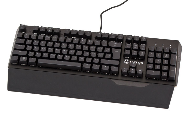 Внешность у Hator Earthquake одновременно простая и интересная. Верхняя панель сделана из пластины металла толщиной в 1 мм, причем боковины и ладонная подставка являются с ней одним целым, что делает устройство очень жестким. Выполнена клавиатура в стиле скелетон, то есть лицевая панель является одновременно и упорной пластиной для механизмов кнопок. На подставке прочно закреплена резиновая подушка, причем материал довольно жесткий и обладает мини-текстурой, которая повышает его и без того хорошее сцепление с руками. В некоторых местах можно увидеть монтажные винты, которые, словно специально, даже не пытались замаскировать.
