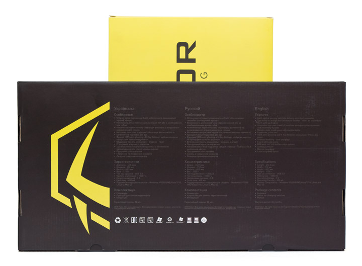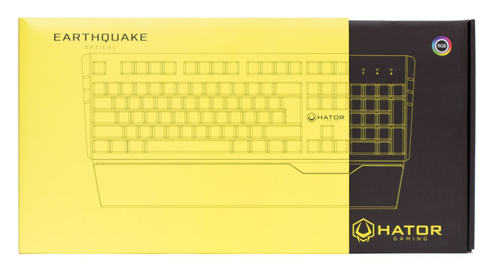 Поскольку контраст, это всегда свежо и модно, упаковка Hator Earthquake оформлена сочетанием желтого и черного цвета. На фронтальной части есть схематическое изображение продукта практически в натуральный размер, на обратной стороне — логотип и название марки. Чтобы ознакомиться с достоинствами и техническими характеристиками устройства, потребуется снять желтую часть коробки. Под ней и скрывается упомянутая выше информация на украинском, русском и английском языках. Особой защиты от повреждений, не считая пакета, внутри нет.