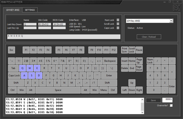Клавиатура поддерживает оба классических режима антигостинга — NKRO по умолчанию (допускается одновременное нажатие на все кнопки) и 6KRO (одновременно обрабатываются только шесть кнопок). Последний режим нужен в случае проблем с совместимостью с некоторыми системами, которые при запуске в NKRO показывают ошибку залипания клавиши.