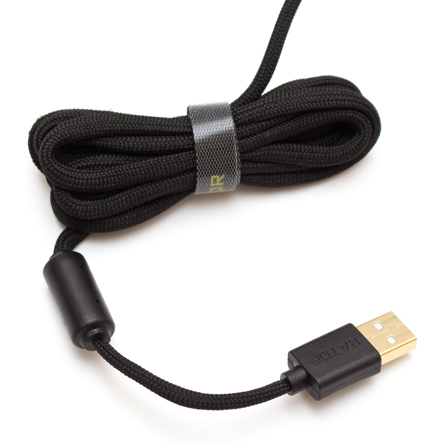 В мыши применен легкий, мягкий и гибкий шнур, который практически никак не мешает её движениями. Длина кабеля составляет 1,8 метра, недалеко от USB-разъема закреплено ферритовое кольцо для устранения помех. На шнуре есть лента-липучка, позволяющая свернуть лишнюю длину провода.