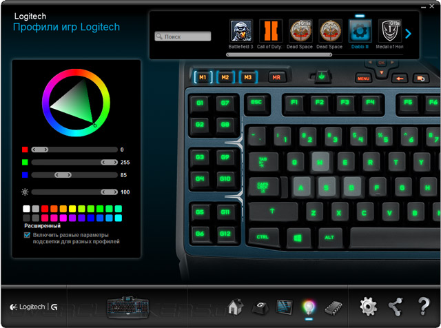 ПО Logitech Gaming Software предоставляет пользователям доступ к множеству настроек, начиная от программирования G-клавиш и заканчивая созданием профилей.