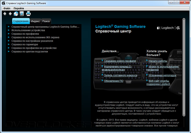 В самой последней вкладке «Справка» пользователь может детально ознакомиться со всеми тонкостями процесса кастомизации устройств производства Logitech. Справка полностью русифицирована, как и весь интерфейс фирменного ПО.