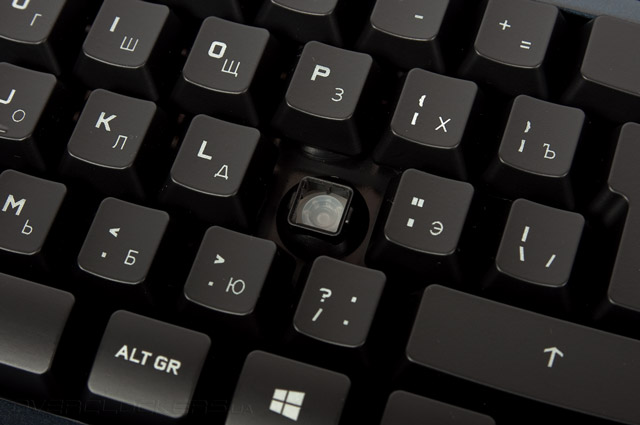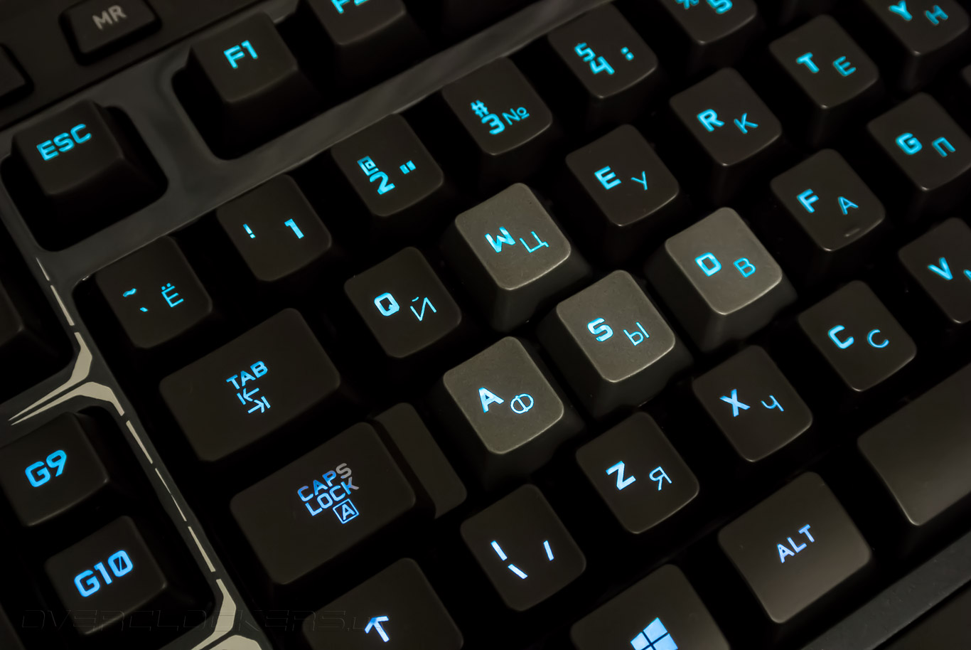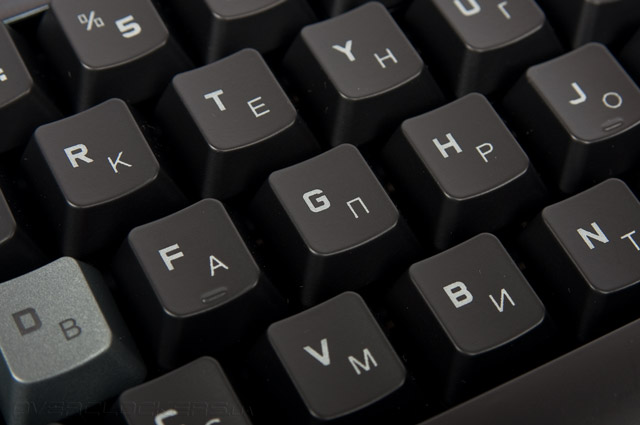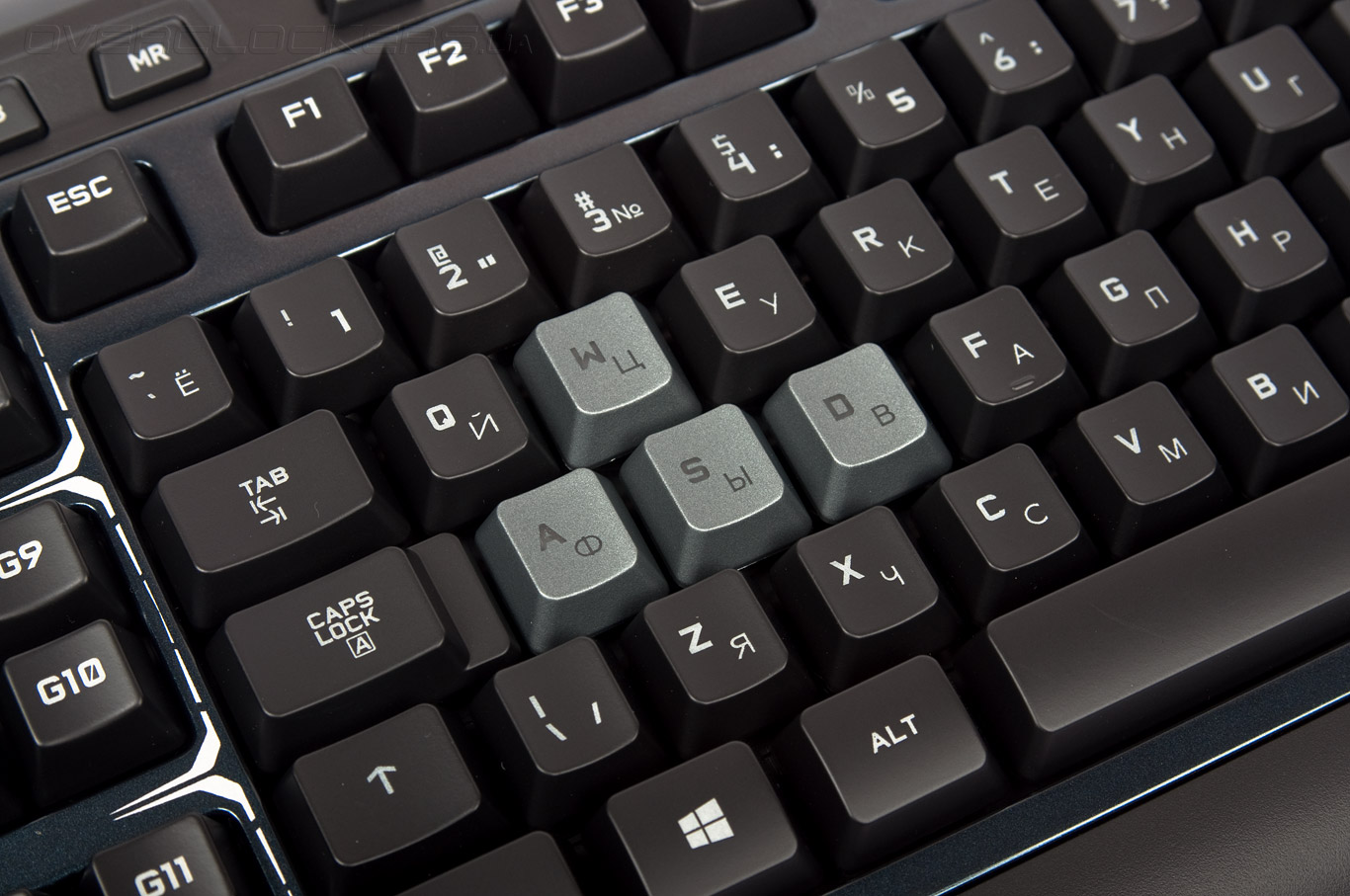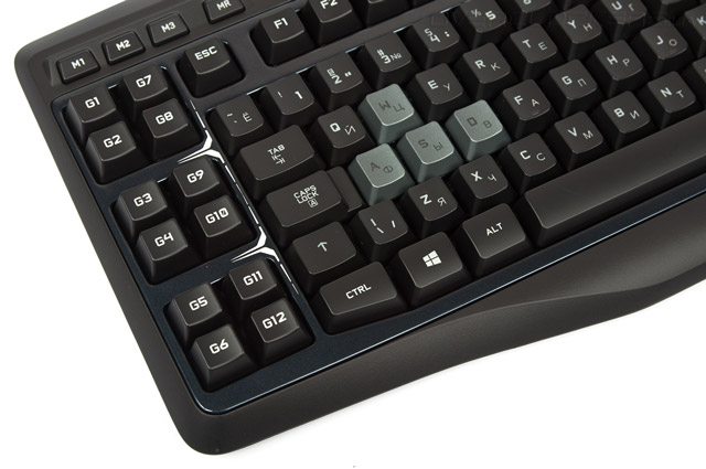 Клавиатура отлично подходит для набора текста. Типичная проблема локализированных версий с укороченным левым Shift и крайне бесполезным слешем до сих пор остаётся актуальной. Выделенный серебристым цветом WASD-блок незначительно упрощают ориентацию в раскладке, а переключатель игрового режима позволяет полноценно окунуться в игровой процесс. Система с защитой от ложных срабатываний работает без помех. Без учёта базовых комбинаций (Ctrl-Alt-Delete/Shift-Ctrl-Alt и т.д.) регистрируется до шести одновременных нажатий 26 клавиш, большая часть которых относится к основному блоку.