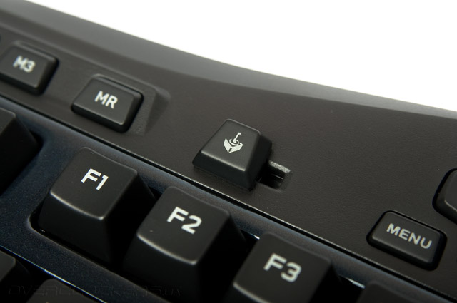 Над ними разместились три переключателя режимов макросов M1–M3 и кнопка записи макросов — MR (Macro Record). Запись макроса на лету проходит следующим образом. Первым делом нажимается кнопка MR и активируется любая клавиша ряда G1–G12. Затем пользователю необходимо воспроизвести комбинацию и повторно нажать MR. В том случае, если надо записать несколько макросов на одну G-клавишу и в дальнейшем переключаться между ними, перед началом создания макро-команды следует задействовать один из переключателей режимов M1–M3. В результате столь несложных манипуляций с G1–G12 пользователю будет доступно до 36 уникальных функций в трех разных режимах, т.е. по три макроса на каждую клавишу.
