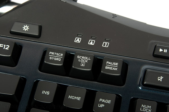 Из-за месторасположения мультимедийных кнопок инженерам пришлось переместить три стандартных индикатора CapsLock, NumLock и ScrollLock ближе к центру.