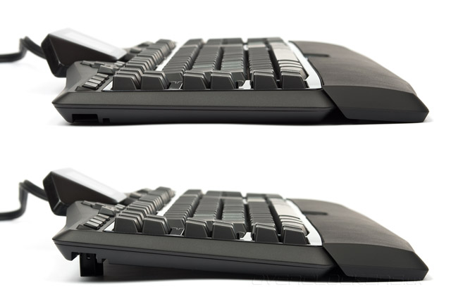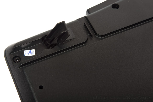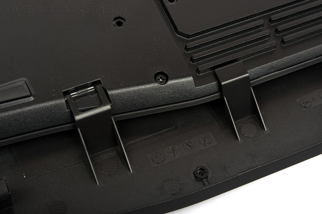 Две широкие резиновые накладки снизу обеспечивают уверенную фиксацию корпуса в заданном положений. В дополнение к этому, клавиатура обладает приличным весом в 1,25 кг, что также сказывается на устойчивости конструкции.