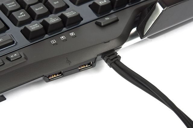 Рядом с местом соединения кабеля и корпуса находится хаб, состоящий из двух USB-портов, поддерживающих устаревшую спецификацию 2.0. Они предназначены для подключения различной периферии и накопителей, не требовательных к скорости передачи данных. Месторасположение удачное, так как подключенные кабеля ни в коей мере не помешают пользователю управлять манипулятором правой рукой и активировать дополнительные кнопки слева.