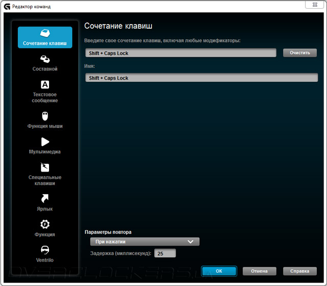- «Сочетание клавиш» — назначить нажатие одной клавиши или нажатие клавиши с модификаторами;